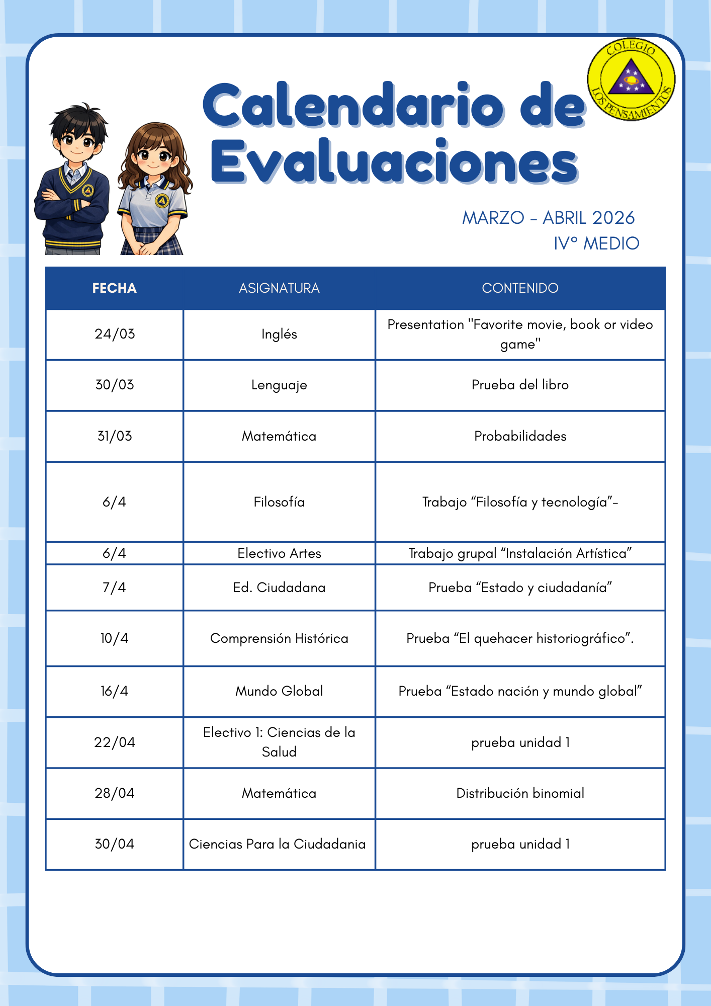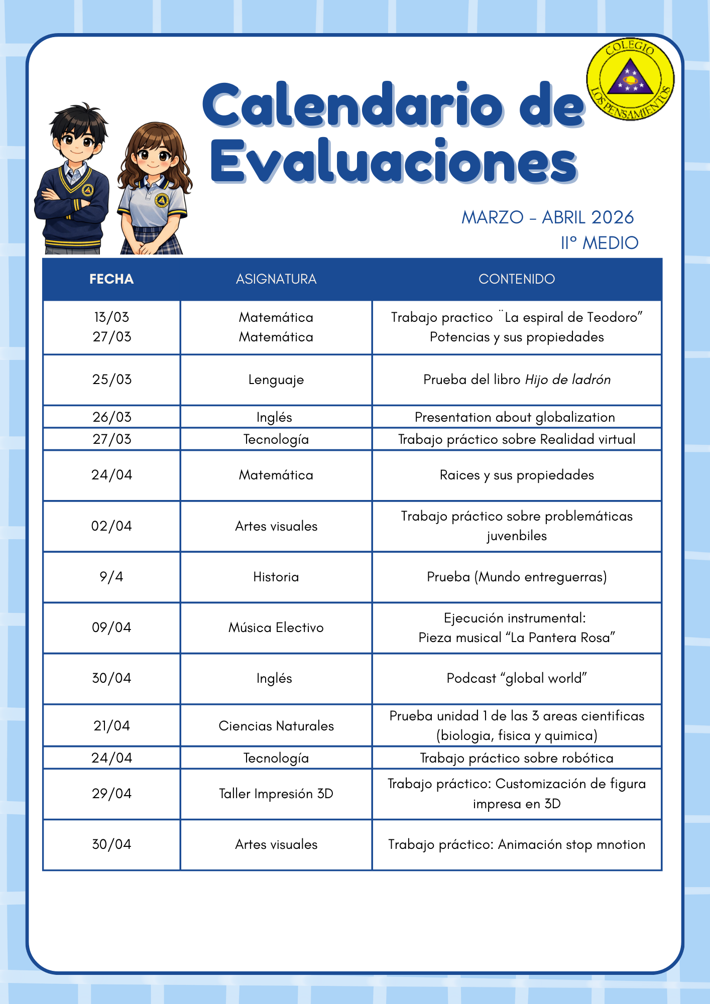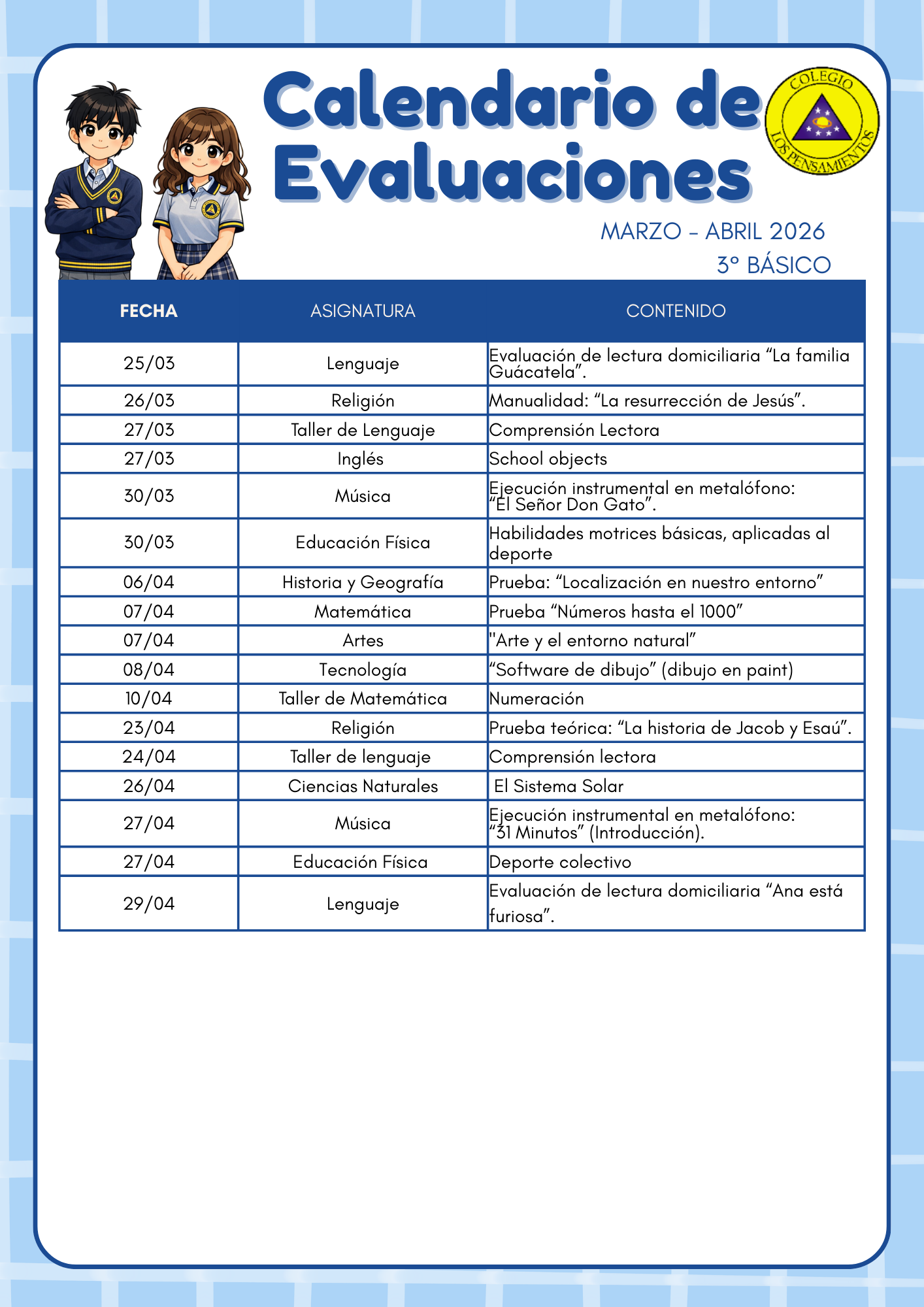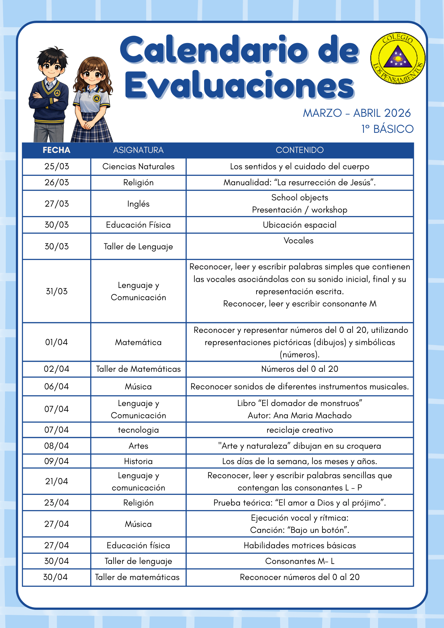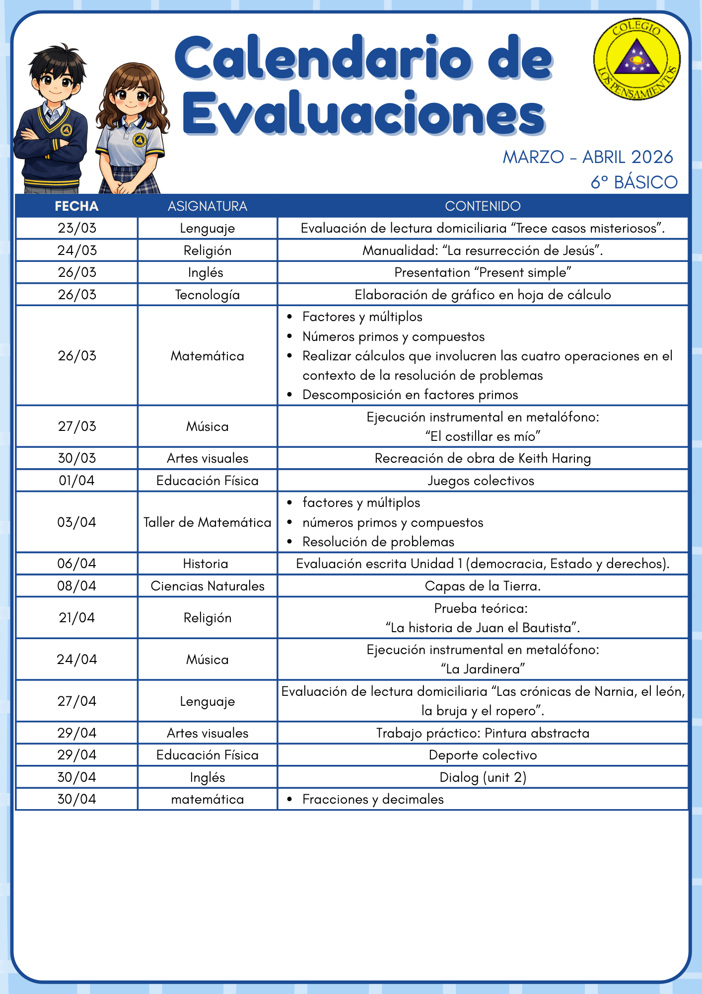 A continuación enviamos enlace para ver «Calendarios de Evaluaciones Marzo 2026»:
