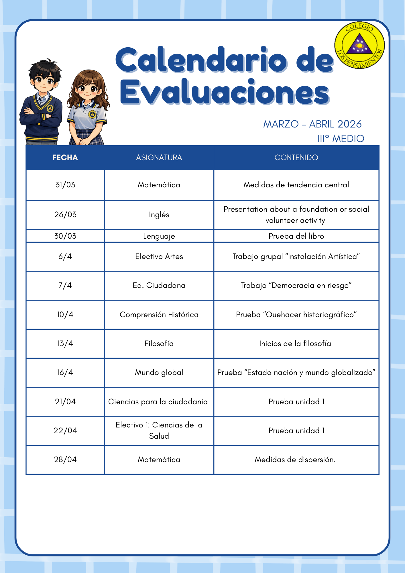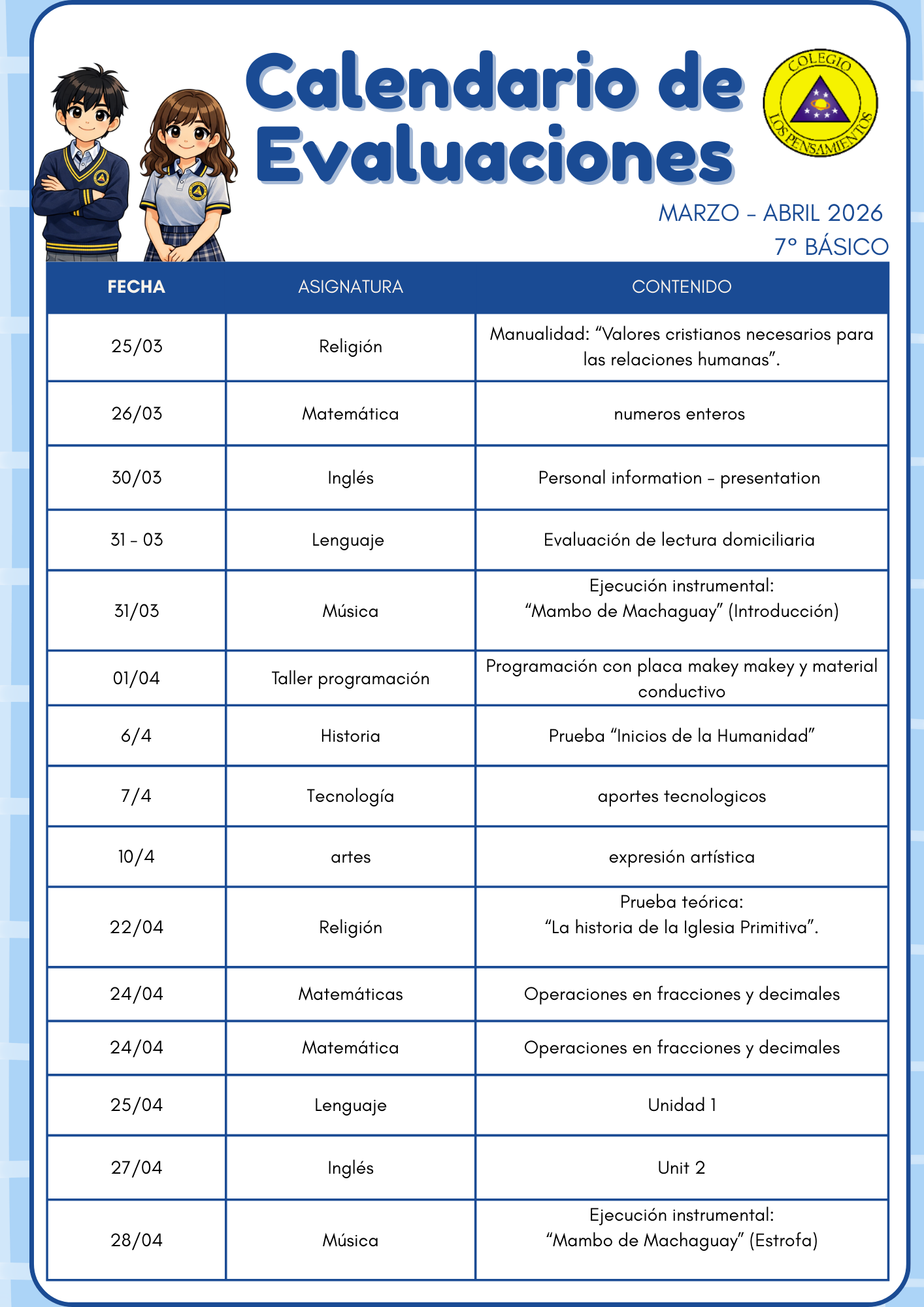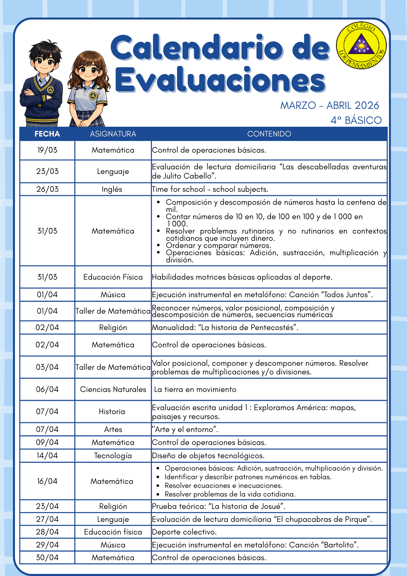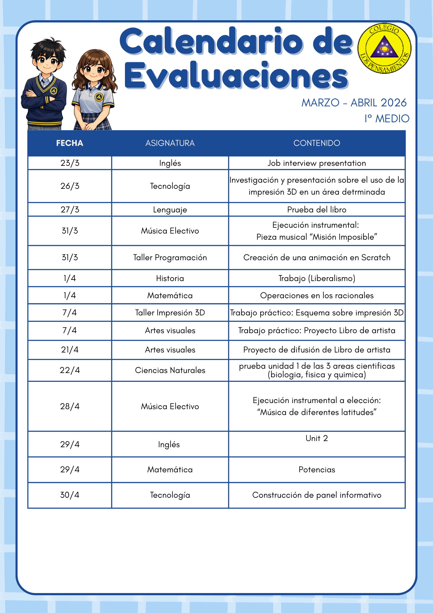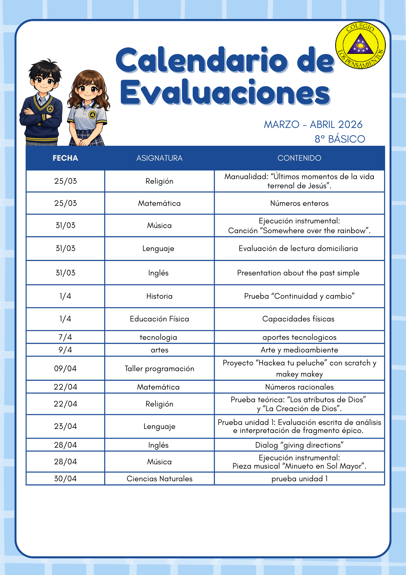 A continuación enviamos enlace para ver «Calendarios de Evaluaciones Marzo 2026»: